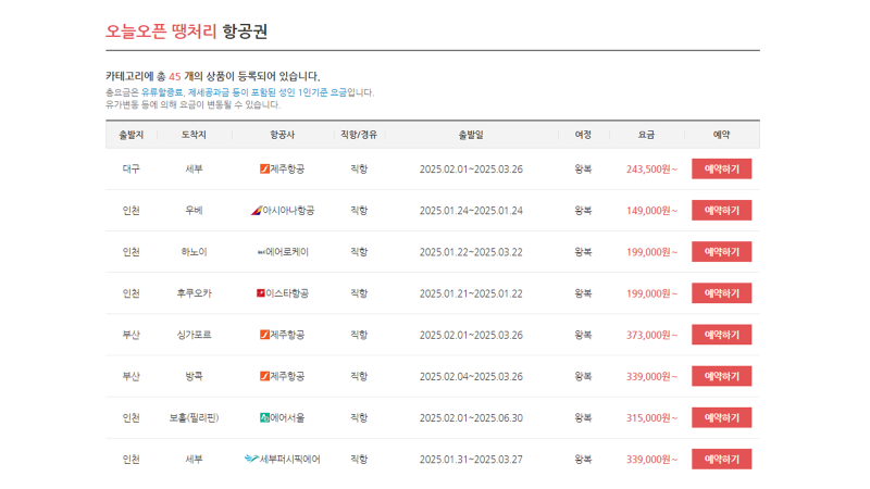 1. 홈페이지에서 왼쪽 상단 땡처리항공을 클릭하시고