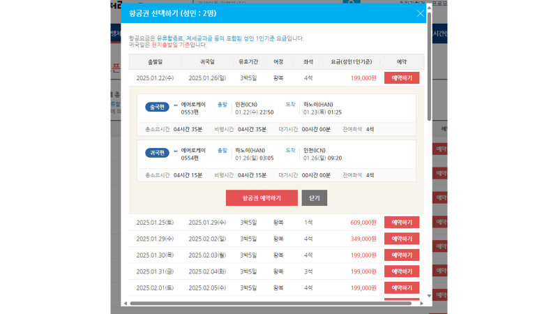 이 중에서 하노이 왕복항공권이 199,000원으로 저렴하네요!