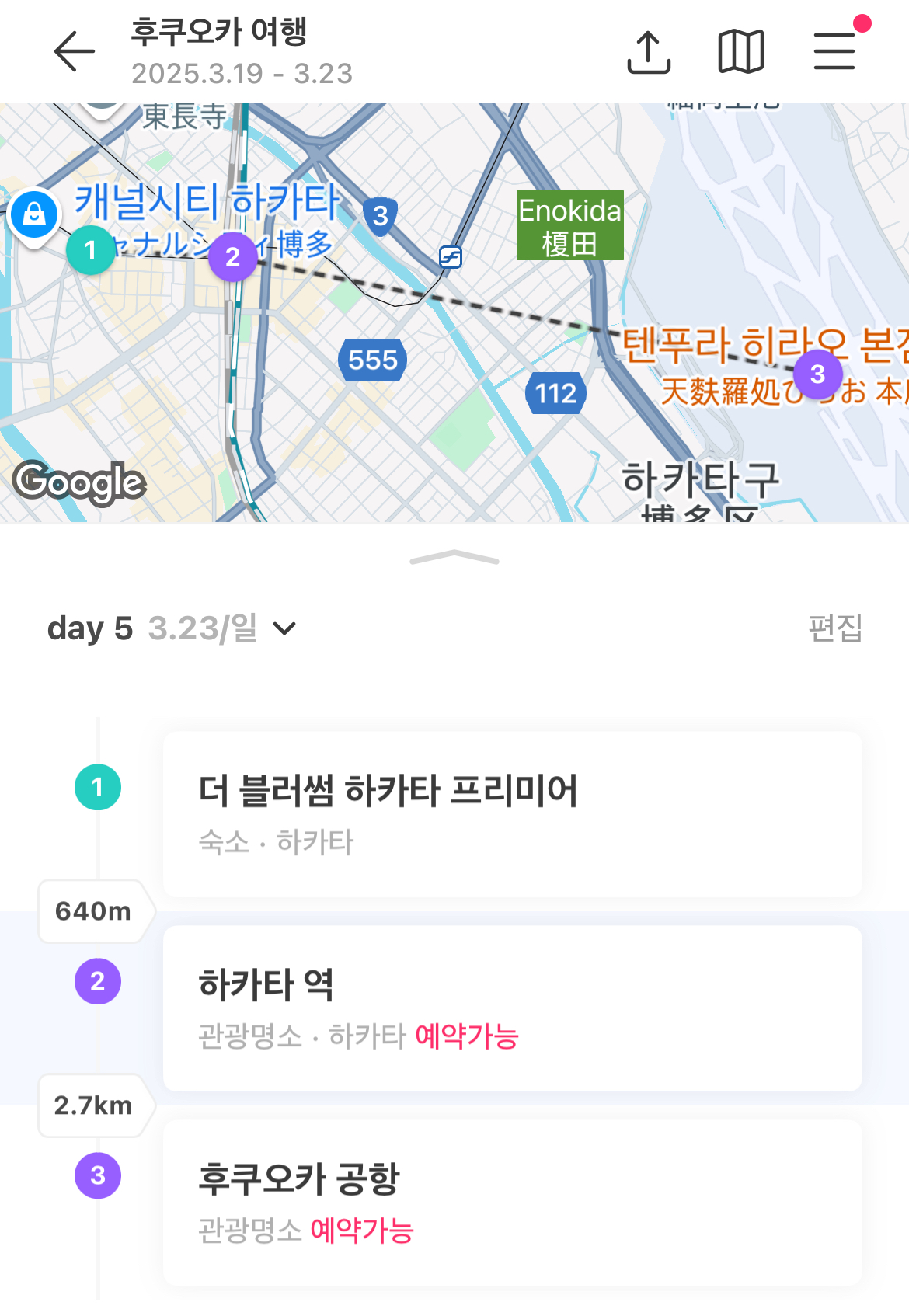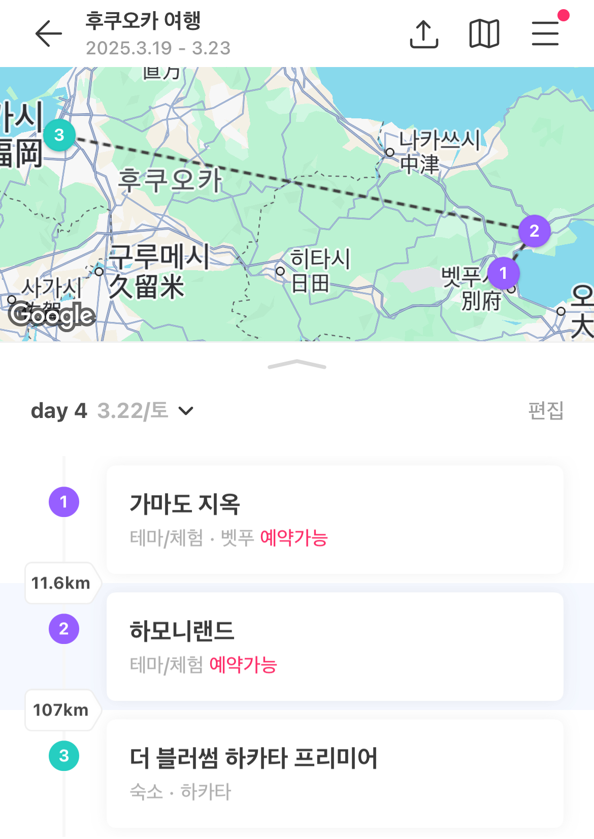 자세한 일정을 보고 싶으면 클릭(트리플 어플로 이동)