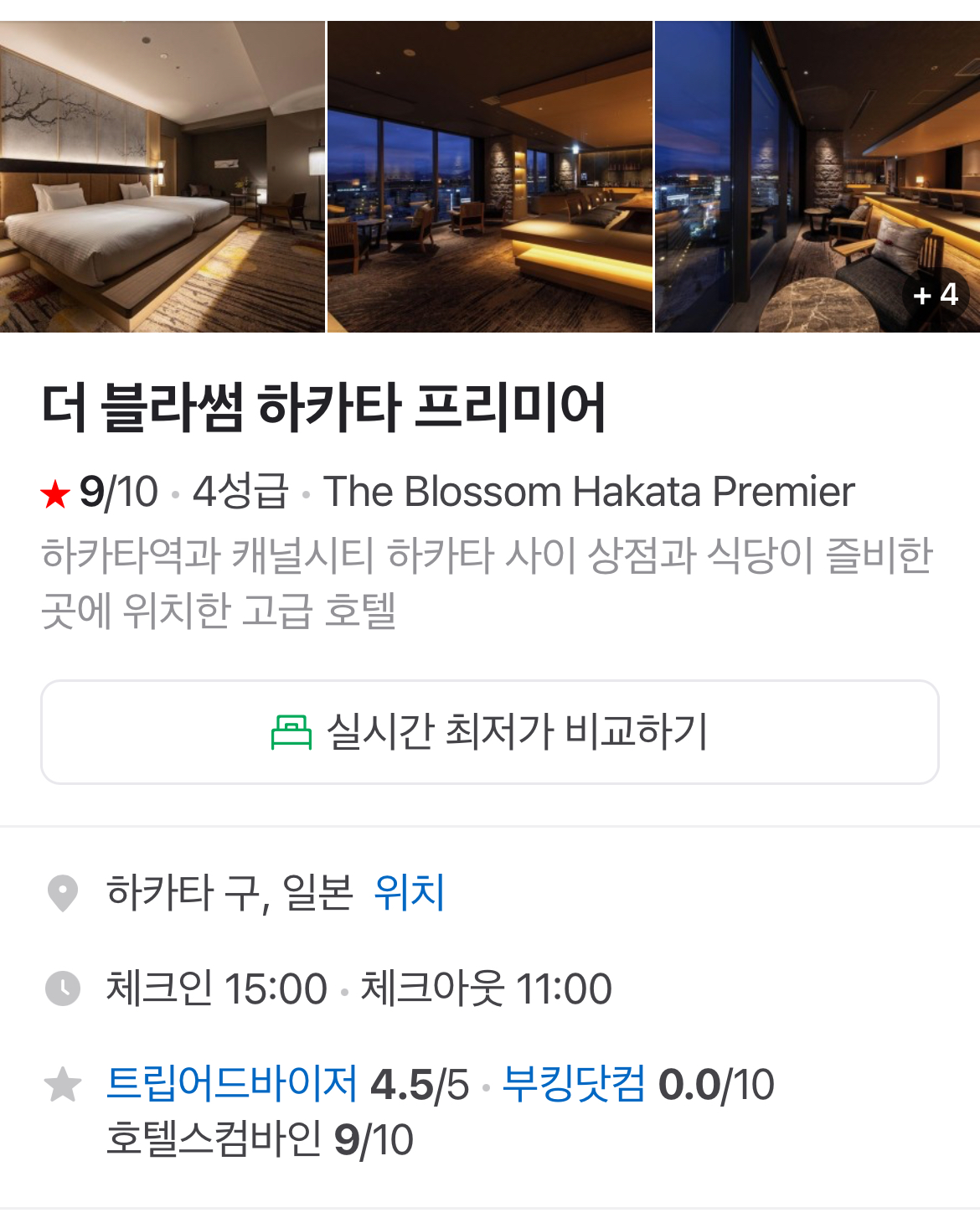 숙소: 더 블라썸 하카타 프리미어(4성급)
