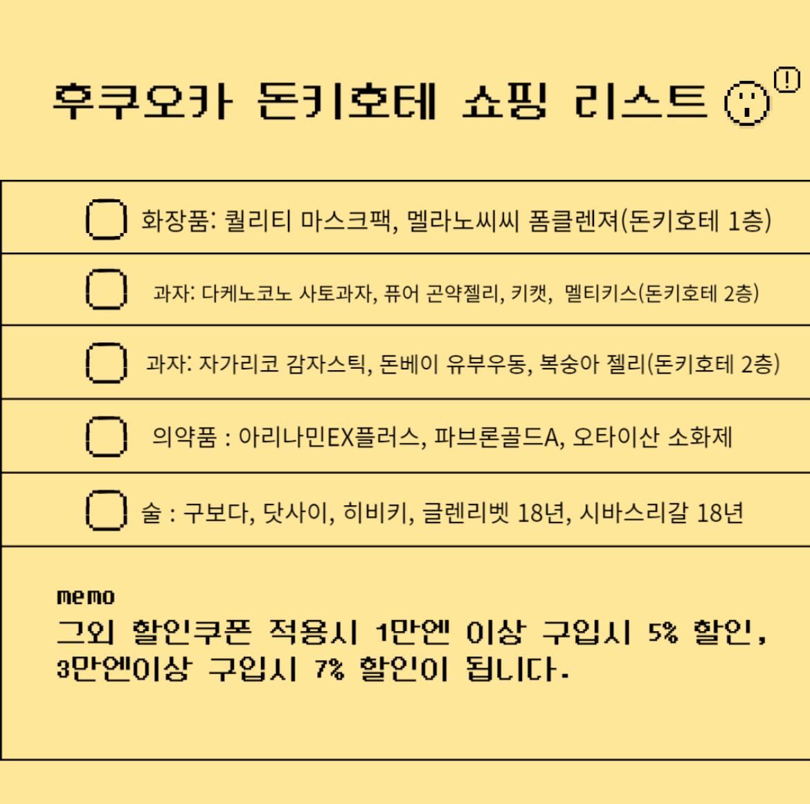 | 일본 후쿠오카 돈키호테 쇼핑리스트 추천템 텐진 나카스 (1) | 2025.01.17 |